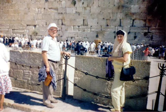 This is me with my daughter Roza Kulawiec, while we are visiting Israel in the middle of the 1990s. We are standing in front of the Western Wall in Jerusalem.