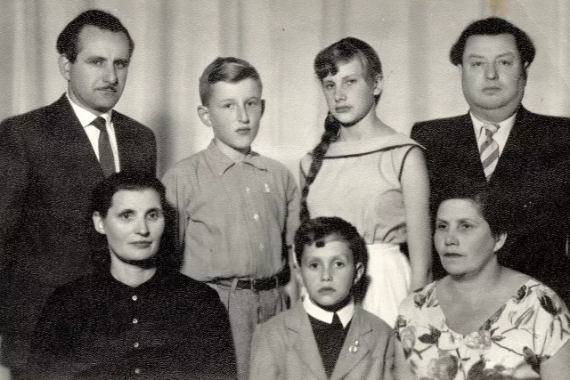 This is me and my family in Brest - now in Belarus. You can see me standing first from left in the upper row. With me there are: my wife, Anna Kulawiec, the oldest son of my uncle Ilja - Josef Mokobocki, and his family. I don?t remember their names.