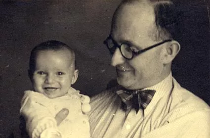 This is a photograph of me with my father, Jiri Lauscher. The photo is from 1937 or 1938, and was probably taken at home.