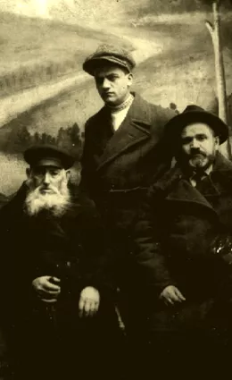 My paternal grandfather. Joiseph Muchnik (first from the left), with my father, Duvid Muchnik (first from the right), and his younger brother, Leibl Muchnik (in the center). This photo was taken in Orhei some time in the 1930s.