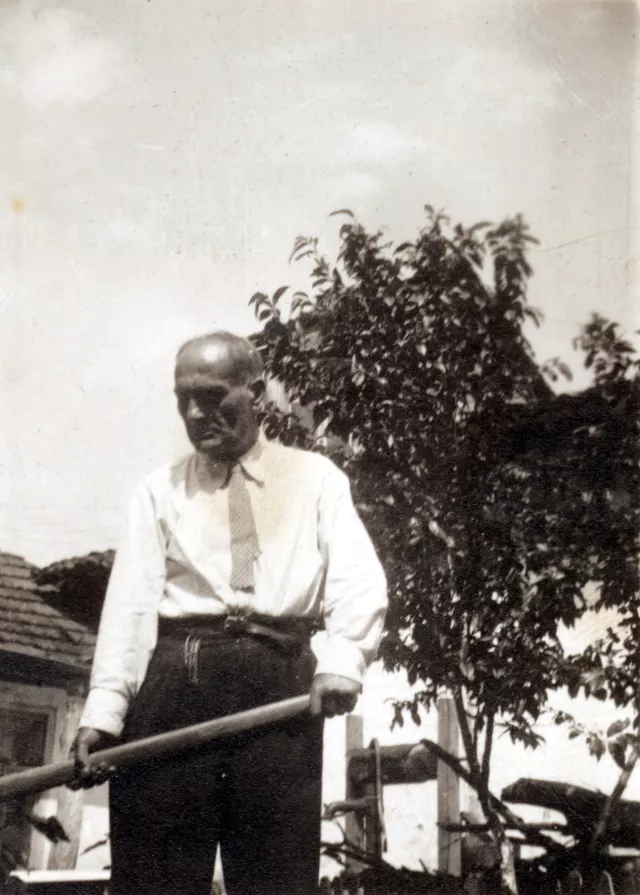 My father Haim Baruhovic is shown working outside our house in the garden in Pristina after the war during the 1950s.