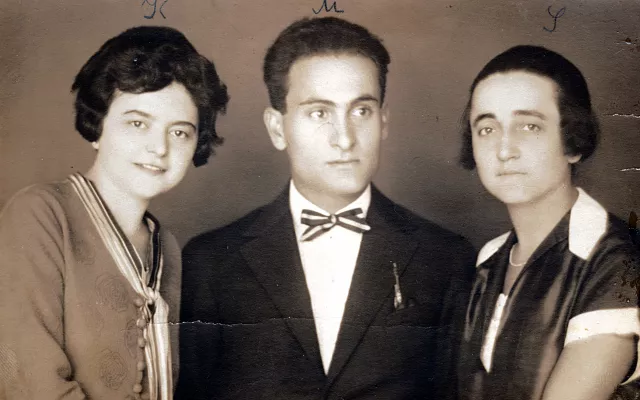 My father, Haim Baruhovic, with two unidentified women. The picture was taken in Zagreb in 1925 or 1926 while my father was studying at the university there.