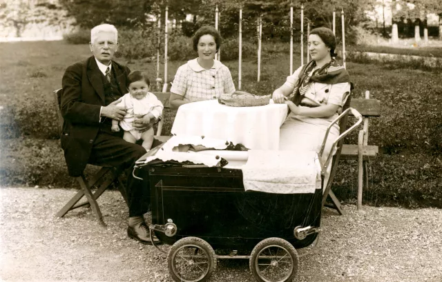 This is my maternal grandfather, Jozef Izrael, with me in his lap, my Aunt Erna (center) and my mother Simha Baruhovic (right). The picture was taken somewhere near Sarajevo in the summer of 1936.