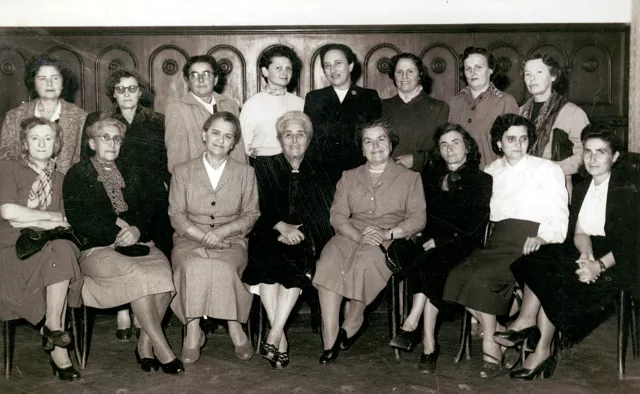 My mother, Simha Baruhovic (first row, extreme left), at a meeting of the women’s section of the Jewish community in Belgrade.