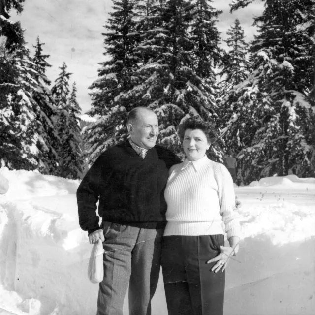 This is a photograph of Uncle Pepa (Josef Bruml), my mother's brother, and his wife Eli, nee Segerova; it was taken in December of 1954. Because they left Czechoslovakia still before 1948, they used to get permission and could visit here during Communist times as well.