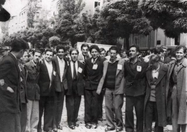 Here you can see me as a student of the Polytechnical University. That was the former name of the present-day Technical University in Sofia. The photo was taken in 1950 in Sofia. I am the fourth on the right in the first row. We have some tags on our lapels, I guess they were on the occasion of 1st May - the Day of Labor. On this photo there are many students from Varna, who had transferred to our university. All colleagues of mine made careers as electrical engineers.