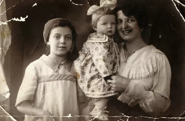 Photo of my mother Rifka and sister Sara Papo on Sara’s first birthday, Sarajevo 1921. With them is mother’s sister Rozika Levi, died in 1943.