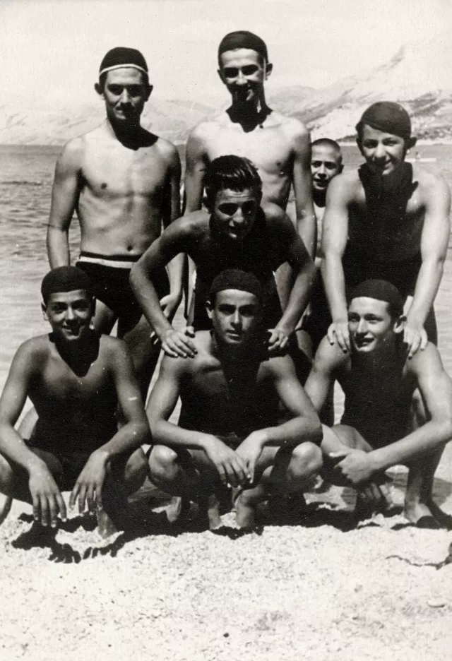 Photo of my water polo junior team on the beach, Makarska 1937.