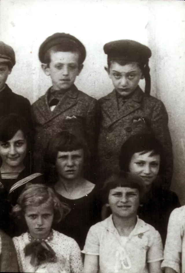 Jozsef Faludi and his brother Imre Fogler in an elementary school class photo