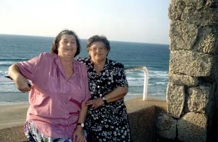 This is my sister Klara (left) and me photographed on the shore of the Mediterranean Sea, when I visited my sister in Israel. My sister and I have this photo. This photo was taken in 1989.