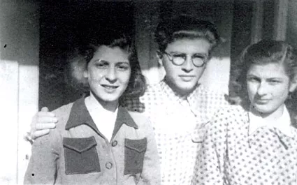 From left to right: my younger sister Klara, my cousin Adolf Edelmann and I. This photo was taken in Uzhgorod in 1945, when Adolf returned from the his hiding in the Tatras after WWII.