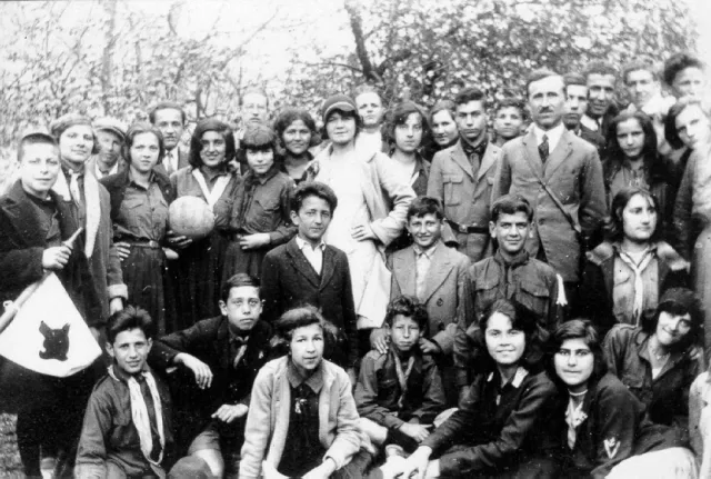 This is my father, Zoltan Biro, with other scouts at a scouts’ event. The leader of the group is the older man with the moustache. My father is next to him, on the left with the wide belt and metal buckle. The picture was taken near Subotica between 1928 and 1930.