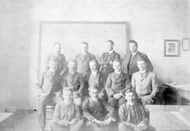 My grandfather Imre Biro (or Mirko Bohem as he was still called at the time) with his colleagues in a railway office in Budapest. Mirko is the third person from the left in the first row.