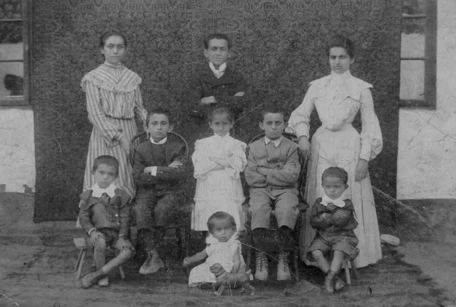 This is the Bohem family, my paternal grandfather’s family. One of the children in the picture is my grandfather. The photo was taken in the 1890s.