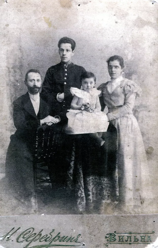 The Begam family: my grandfather and my mother are sitting, my grandmother and her cousin Antokolsky are standing. The photo was taken in Vilno in 1896.