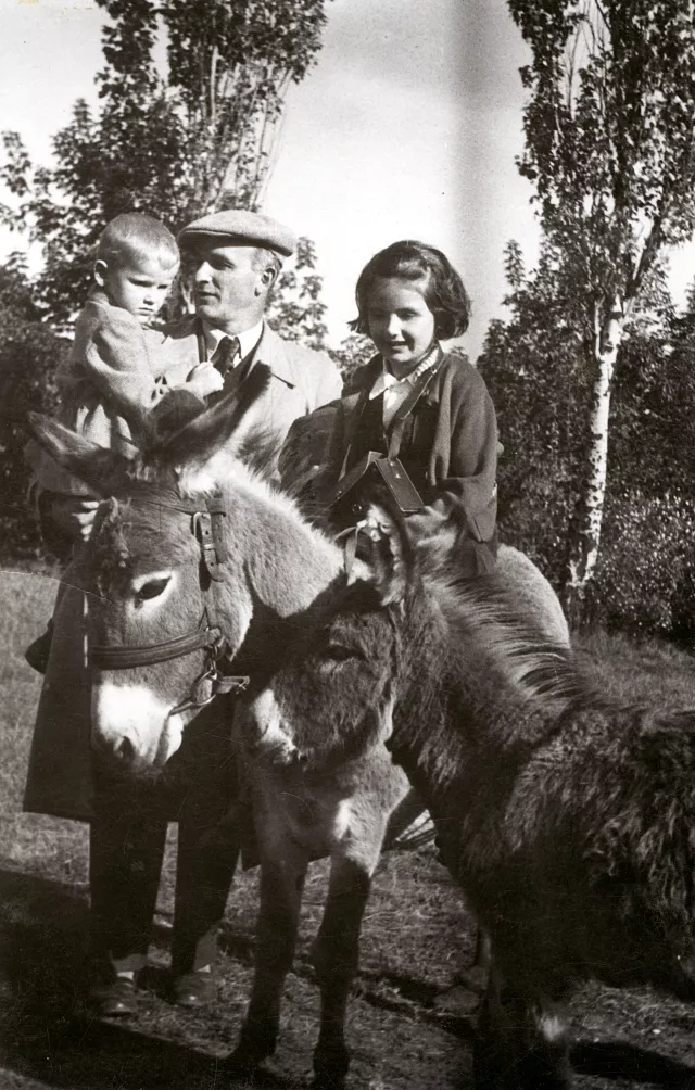 This a photo of me and my children, Ania and Romek. Ania is sitting on a donkey. This photo was taken in Warsaw in 1955.