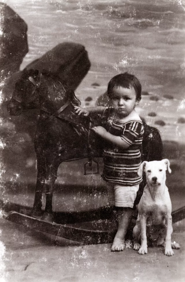 There's a photograph of me, as a two-year-old kid with our little dog Milka, holding the rocking horse. It was taken in my father’s photographic studio ‘Moderne.’