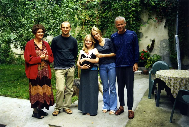 They are at Ania’s house in Podkowa Lesna near Warsaw. The photo was taken in 2000 or 2001.