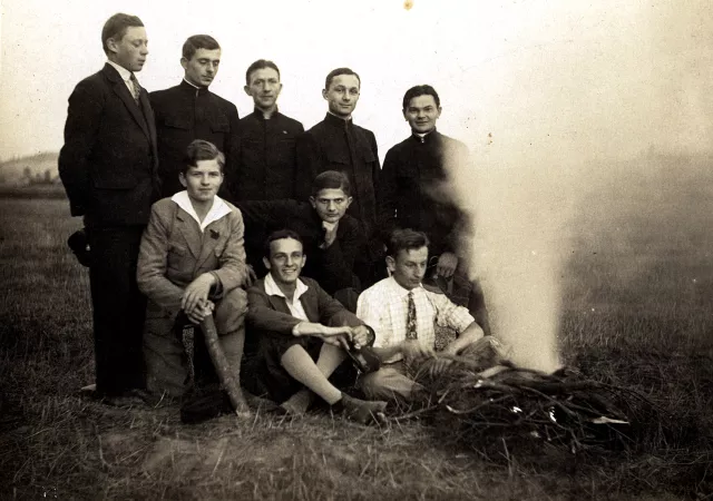 First on the left in the second row is Marian Pilichowski. He lived there in the forester's hut. We would go on these 7-km walks from Kielce to Dabrowka, and sit there and talk.
