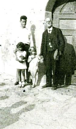 This is my grandfather Julius Bondy with relatives. The photo was taken in Holic in 1929. The son, Mr. Spitzler, emigrated to the USA in the twenties. In the thirties, he came to visit his relatives. There’s also his daughter. She survived the Holocaust, a German was hiding her, and later she emigrated to America.