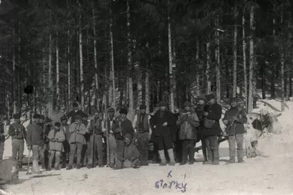 This photograph was taken in 1926, and shows my father, Julius Engel, logging in Rakusy.