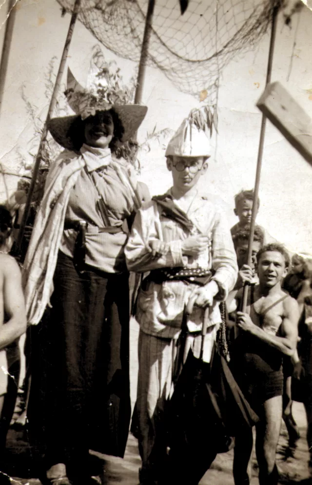 I am acting in a play on an excursion in Horany. We were with the Tourist Association of Nature-Lovers. At that time the English king visited the United States and all the papers were full of it that the president of the US received the king. And we made a parody of this. The king was played by the smallest and ugliest Jewish boy among us and I played the queen as the tallest girl in the company. It was terribly hot and we had to dress up in all this shit, so when we finished the acting, I jumped into the Danube and I got pneumonia.