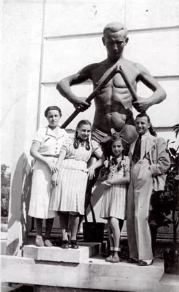 This photo was taken in the summer of 1938 in Postyen. From the left: my mother, Rozsa Kauders, my sister, Klara, me and my father, Istvan Kauders. During the previous year's trip through Vienna and Czechoslovakia, we spent a day in Postyen. We liked it so much that the next year we travelled there and spent two weeks in a bed and breakfast there.