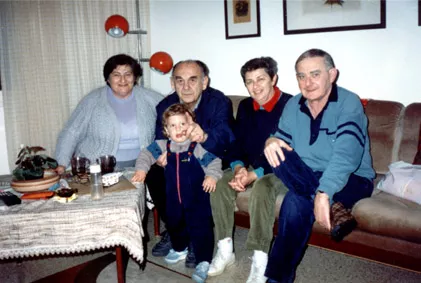 This is my sister Klara's family. From left to right: my sister Klara, her husband Leopold Lowenberg, their daughter Yulia Penson and son-in-law Boris Penson. Beside Leopold is Yulia's son Max. This photo was taken at my sister's home in Netanya, Israel, in 1980.