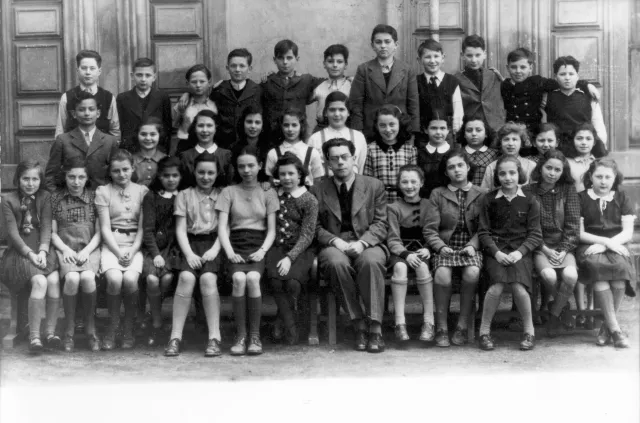 This is a picture of our class in the Jewish gymnasium in Brno. In the center there is our professor, Arnost Gerad. I am the first from the left in the second row. The picture was taken in 1941.
