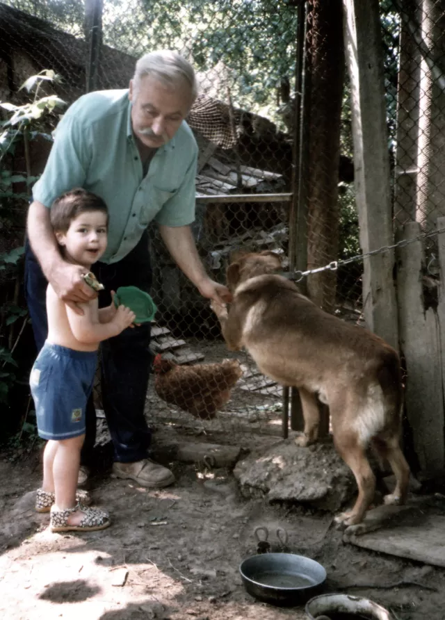 My son Stepan Roth with my great grandson Andras in the yard of our house. This photo was taken in Uzhgorod in 2001.