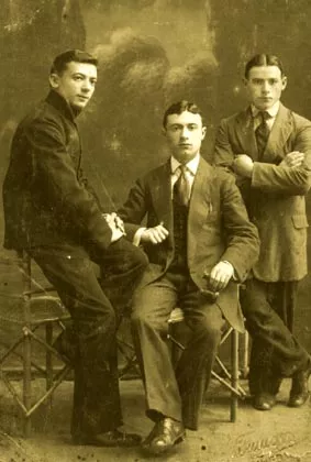To the left is my mother's brother Lazar Treiger, clad in a work jersey, and the other two are his friends, whose names I don’t know. The picture was taken in Kishinev in 1911. Lazar gave this photo to my grandmother.