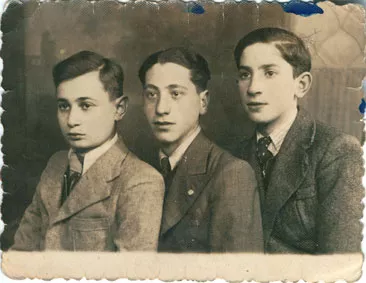 This is me, Leizer Finchelstein, before the war with 2 friends of mine, Jews like myself. I think I was about 15. The photograph was taken in 1937. I'm the one on the right, the one in the middle is Iancu, and the one on the left is Meier. We probably had our photograph taken one time when we went for a stroll, I forget what the occasion was.