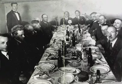 This is a banquet of Kaunas chess club. To the right is my father Leizer Gurvich. I do not know the rest. Kaunas, the 1920s.