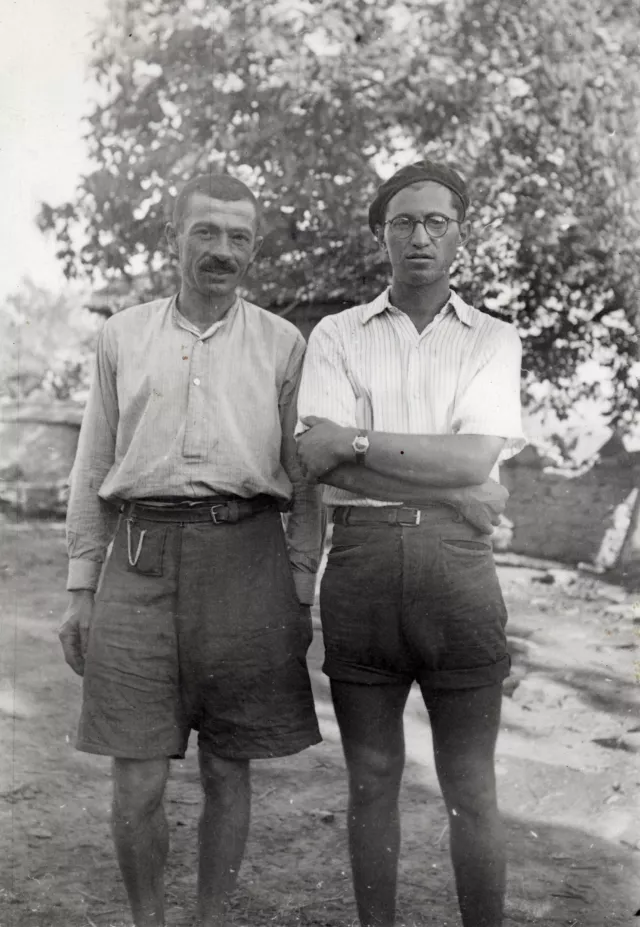 This is me with another worker in a Jewish forced labor camp in Klisura village, Tran region. I don’t remember who this man is. The photo was taken in 1942.