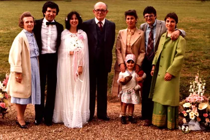 From left to right: my cousin Leonid's wife Irene, the groom (I do not know his name), Clod, my cousin Leonid, Leonid's other daughter Mari, her husband and husband’s mother. Mari's son are in the front.