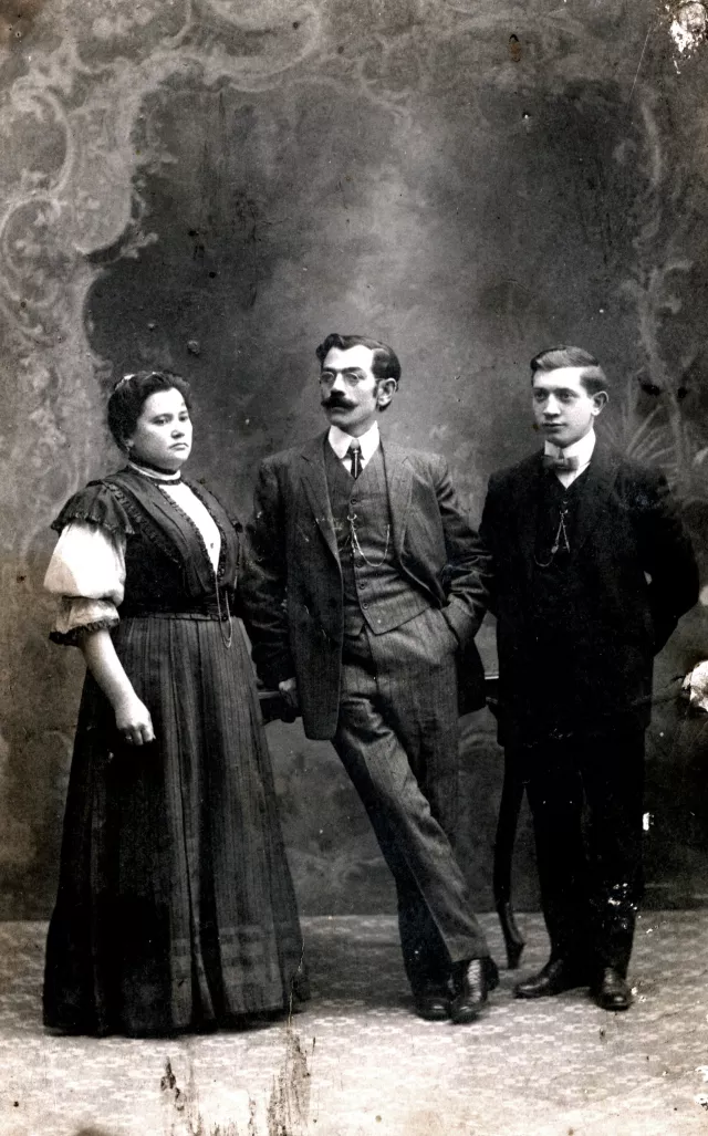 These are my relatives on my mother's side. From left to right: my grandmother Tsyvia Risman, grandfather Leizer Risman, my uncle (my mother's brother) Ruvim Risman. Makarov, 1914.
