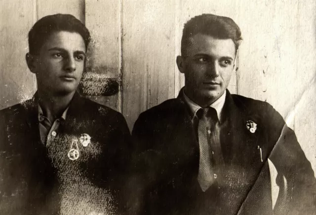 We were photographed after I was awarded with the badge ‘Voroshilovsky Strelok’ [‘Voroshilov's Marksman’] for good shooting results. It is on the right side of my breast; the badge on the left is ‘Ready for Labor and Defense.’