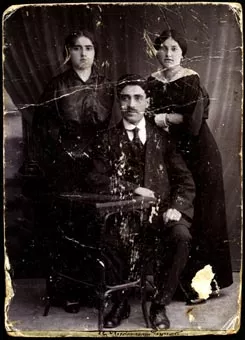 This is my mother Libe Farbirovich, nee Lebyan with her aunt and uncle. My mother is 14 years old here, the photo was taken in Roslavl in 1911. Aunt Dora Gendlina was ten years older than my mother, she was 24 years old; Uncle Matvey Gendlin was 26 years old. The picture was taken in a photo studio and everybody is dressed up.