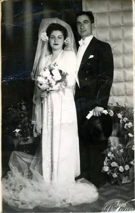 I remember a very happy atmosphere when it comes to my wedding memories. We got married at the Zulfaris Synagogue, which is used as a museum today, on the 6th of June in 1948. This synagogue had a positive feature for the wedding ceremonies. It was regarded as good luck for the brides to climb up the stairs till they reached the tevah. There is a staircase with 15-20 steps at the entrance of the Zulfaris Synagogue. All the girls who were single at that moment, my cousins, my friends from the neighborhood, all wrote their names on the soles of my shoes. [There was a belief that to write one's name on the sole of a bride's shoe would cause a single girl to get married] My friends refreshed my make-up. (In those times there were no professional make-up people to come and make up the bride and her fiamily like ther is today.) Actually, they were watching me with a little bit of envy. Though I was the youngest one among the cousins I was the one who got married the earliest. I was 18 years old. I had rented both my wedding dress and the veil, but I had had my veil made according to my taste. Our wedding was quite a modest ceremony, but all of our crowded family members, and all of Ortakoy was there. After all the bride was from Ortakoy. My bridal veil got ripped by a cat the day following the wedding. Consequently, we had to buy it. We went to Yalova [a city near Istanbul, which is famous for its spas] for our honeymoon.