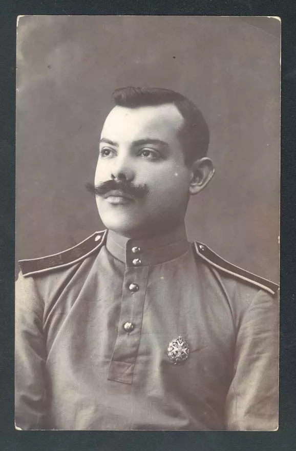 This is my grandfather's younger brother. His name was Yasha Golshmid. He served in the imperial army and he sent this photo for memory to my grandmother and grandfather. Yasha was killed in 1915, during the First World War somewhere in Prussia (inscription on the reverse side of the photo is illegible). He is also buried in the Jewish cemetery.
