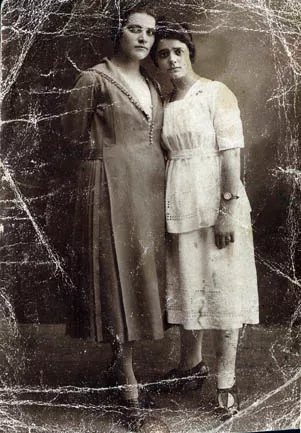 My mother Liza (on the left) with another woman, unfamiliar to me. There is no stamp of a photo shop. There is an inscription in pencil in Bulgarian which has almost gone blank and is totally illegible. On top of it, obviously much later, was written the year 1916 in ink, so apparently the photo was taken at that time. In Sofia.
