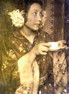 My mother Sophia Rozenstein in the role of Chio-Chio-San, My mother must have given the same photo to her teacher Olga Vekker in 1949. The photo is signed: To dear Olga Davidovna from her grateful student Sonia. 8/X - 1949.' This photo was taken at a rehearsal in 1930.