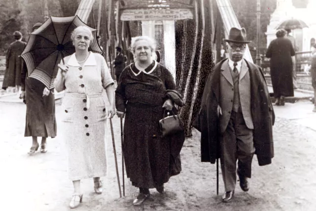 This is the last photograph of my paternal grandmother; she died soon after this photograph was taken. The photograph was taken in 1935 in the Vatra Dornei mountain resort. From right to left: my paternal grandfather, Avram Mizrahy, my grandmother, Lucia Sara Mizrahy [nee Rubinstein], and a friend of theirs whom I don’t know.