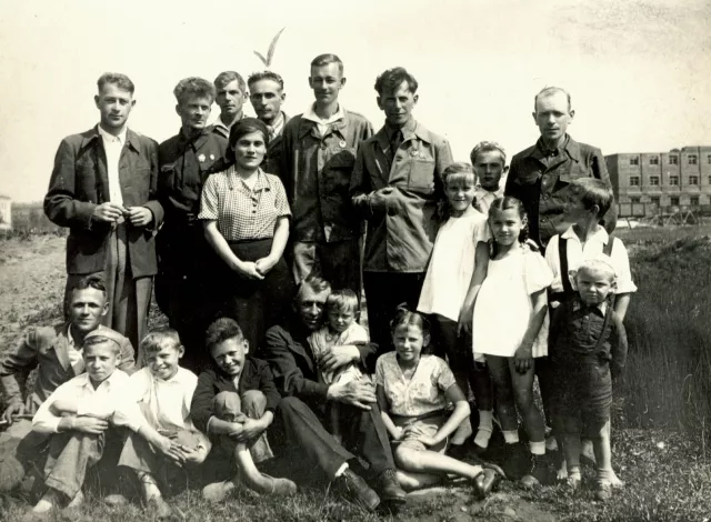 My father Valadimir Pavlovskiy during reconstruction in Stalingrad in 1943. My father is the 4th on the left in the upper row.