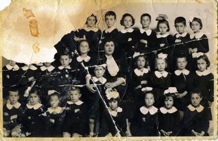 This is a photograph taken in Shehit Asim Elementary School. My friends are there too. My Jewish friends too. For example there was Suzi (current last name Altaras), Dona Sarfati, Roza Kalvo. My elementary school friends. And also a childhood friend with the last name Kaneti.