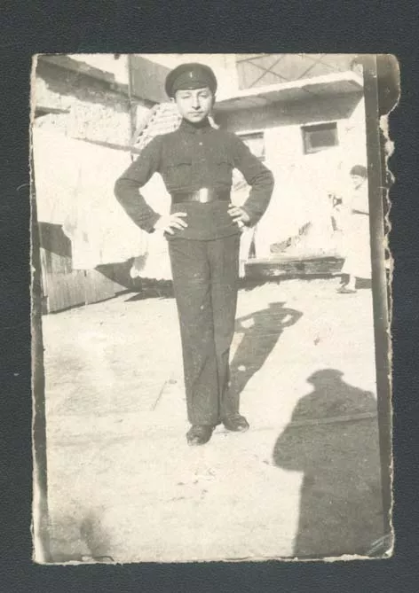 My father, Samuil Berkovich Levit was born in Simferopol in 1904. His family, too, was rather well to do, but not as much, as the family of my mother. Here we see father in the courtyard of their own house in Simferopol (they owned a house, in my opinion, in Kanatnaya street), wearing the uniform of a vocational school pupil. On this photo he is, probably, 12-13 years old. That school had a commercial branch. He was studying at that commercial department. But before that, my father, I think, went to a cheder, but I do not know for sure.