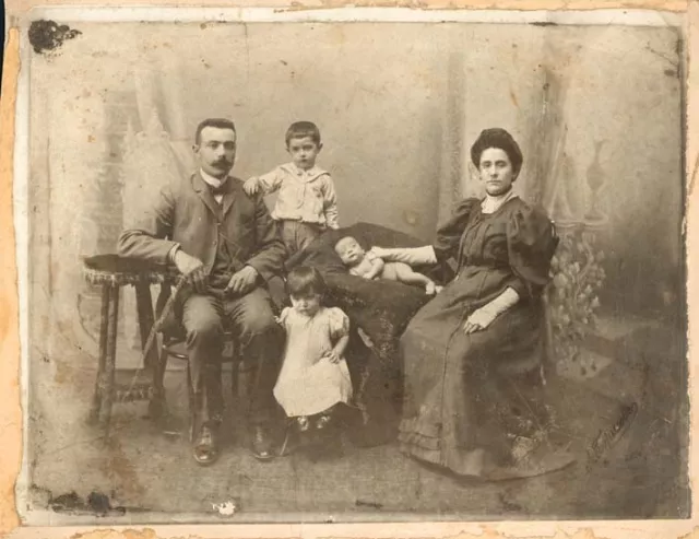 On the right is my grandmother, Rachel Moiseevna Goldshmid, maiden name Eiderman. On the left sits my grandfather, Leiba Meerovich Golshmid. Below on a chair - my mother Aida, above her is her elder brother Syoma. And the lying child must be mother's younger brother Sasha. Syoma was born in 1902 in Ukraine, and mother was born in Saint Petersburg, in 1906. This photo is made in Saint Petersburg.