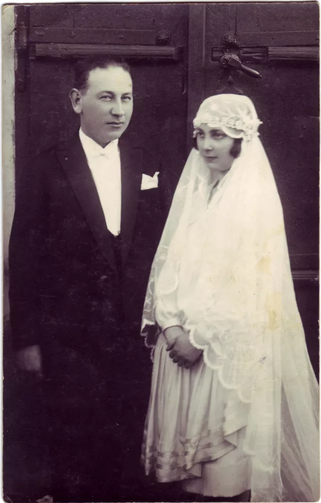 The photo was taken at their wedding, in Dorohoi, on the back of the picture it is written May 2, 1926.
