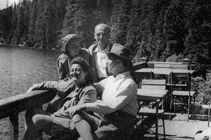 In 1938 or 1939, my sister organized a trip to the High Tatras. My sister, Magda Erdelyiova, is sitting on the left in the photograph, and her boyfriend, the veterinarian Dr. Klement, who changed his name from Klein, is standing on the left. I don’t recognize the other people in the photograph.