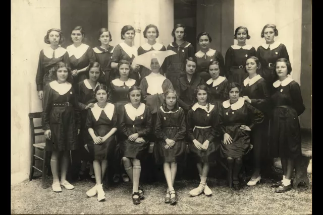 This photo was taken at my school Saint Vincent de Paul. I look old so I suppose it was taken at 1938. It was in the school's tradition to take every year a photograph of each class with the nuns.